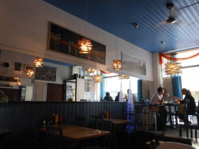 大通りから少し離れた路地の方へ入ると鮮やかな水色のお店が。映画のポスターもはってありました!