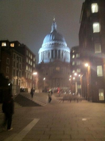 2月のロンドン、夜ともなるとかなりの冷え込みとなり、人影もまばら。昼間は写真の大聖堂前の広場から写真の後方のミレニアム・ブリッジまで観光客とシティ勤めの現地の人...もっと見る