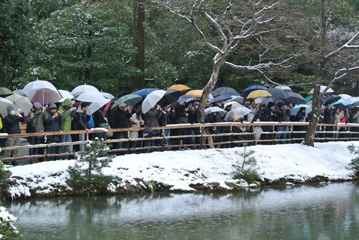 雪の金閣を撮影しようと 混雑してました- 旅行時期
