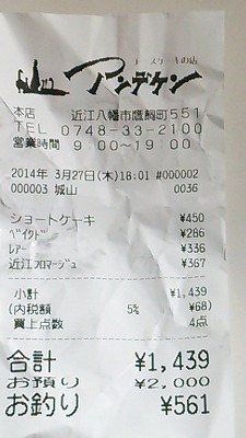 2014/03/27 滋賀 近江八幡 アンデケン どこがチーズケーキ専門店? 標準以下!