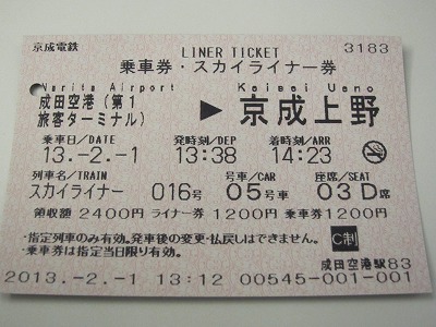 スカイライナー 成田空港 - 上野 2013年2月1日 更新版