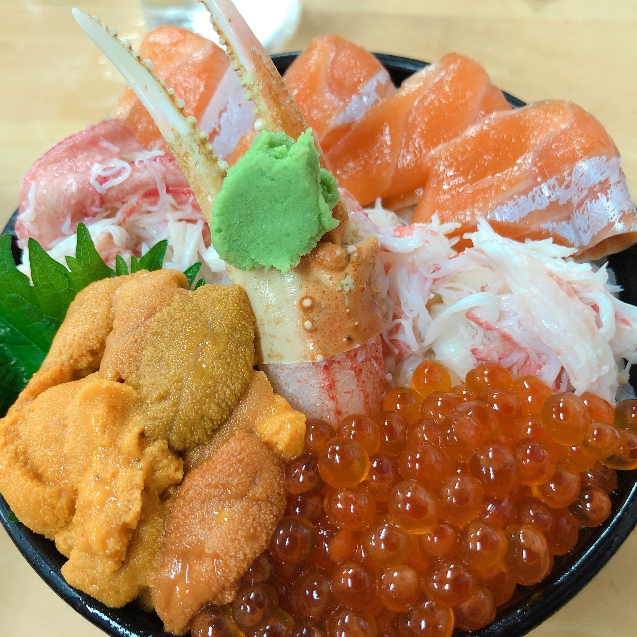 運ばれてきた海鮮丼は、見た目は豪華で美味しそう。