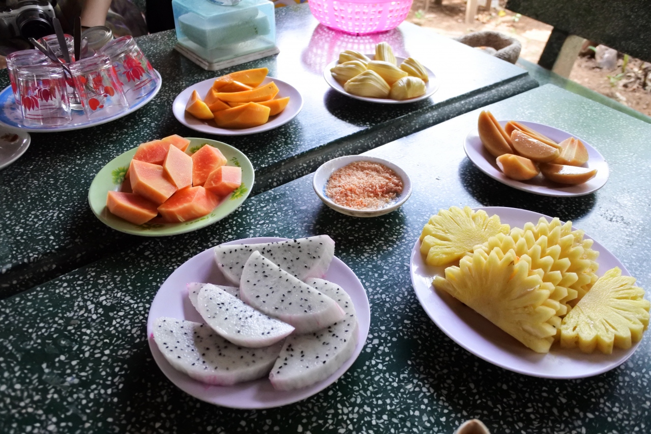 ミトーに着いたらボートで島に渡り散策しつつ、はちみつや南国フルーツ、ココナツキャンディーなどの試食ができます。