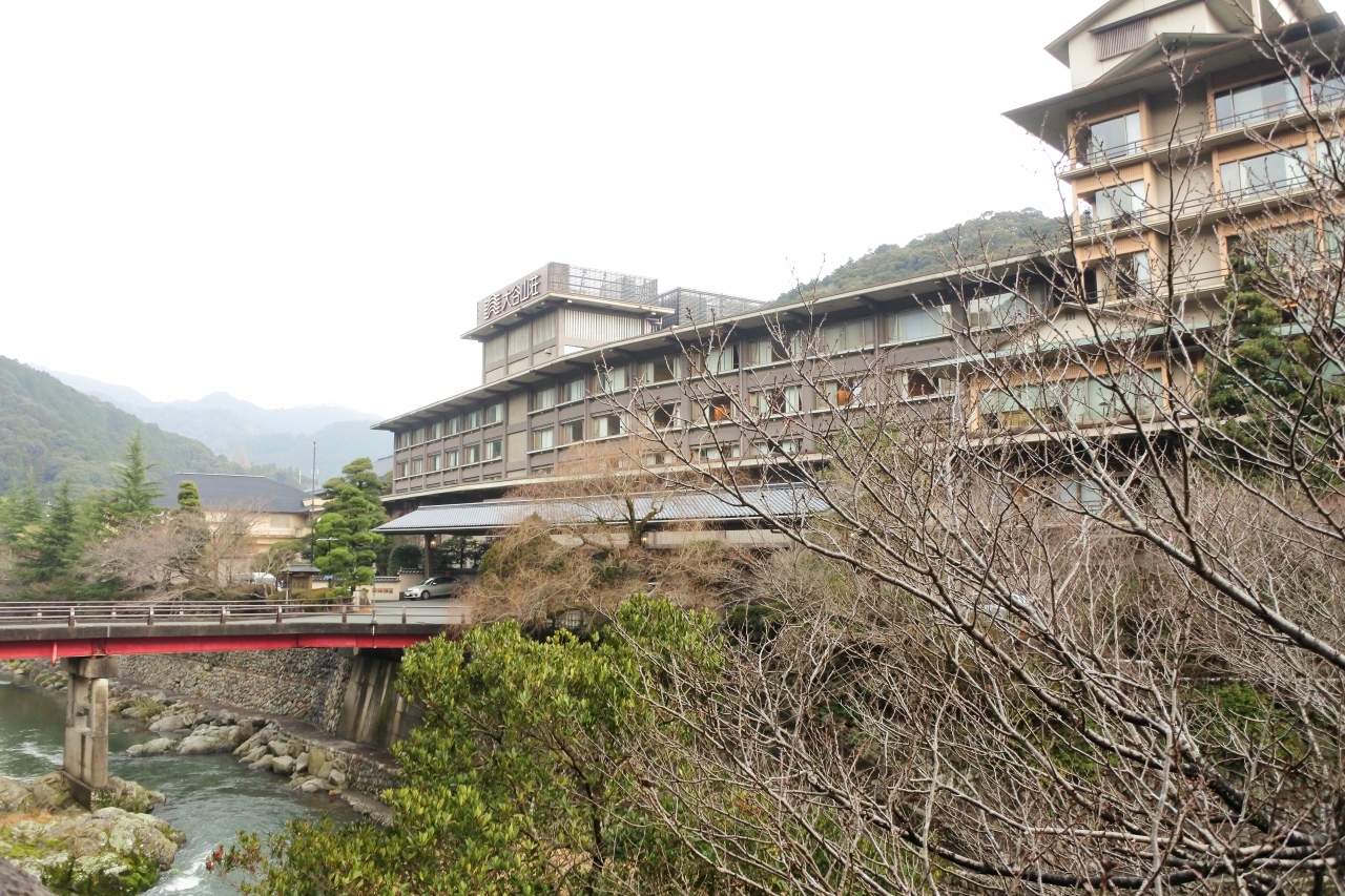 お風呂も広く、優雅な雰囲気。川のせせらぎに癒されます。