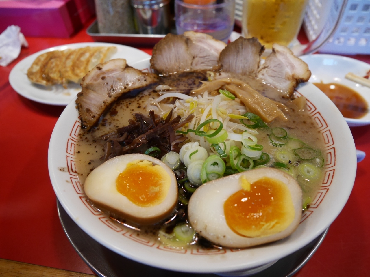 熊本ラーメンにトッピングを全部乗せた「よくばりラーメン」をオーダー。