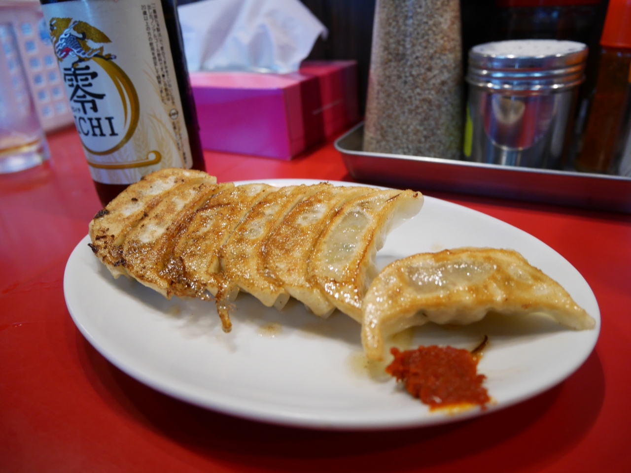 一緒に頼んだ餃子は一口サイズで食べやすく、ランチビールとの相性が抜群!