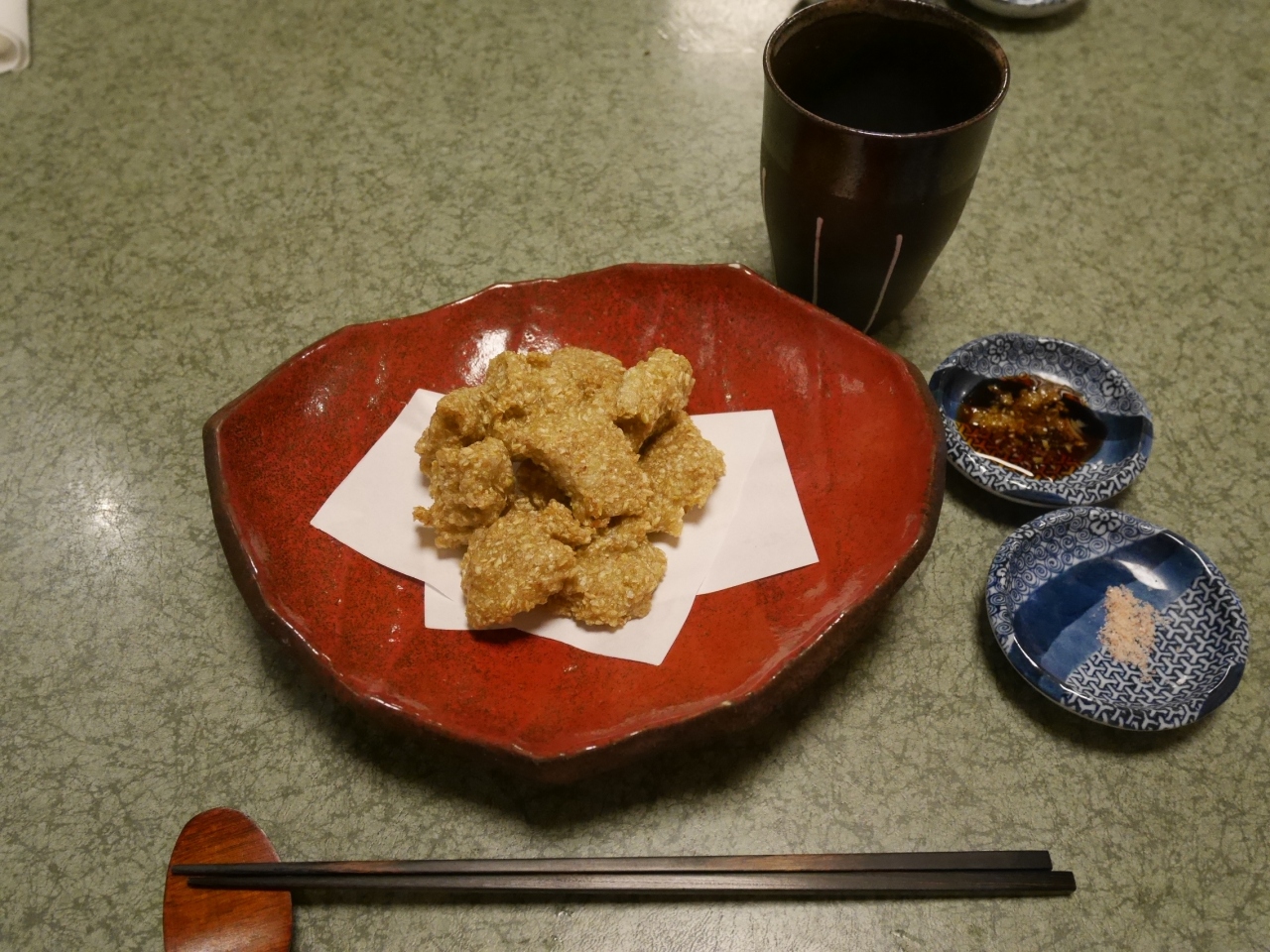 そして鶏ザンギ。甘辛の玉ねぎソースをかけた鶏のから揚げなんですね。