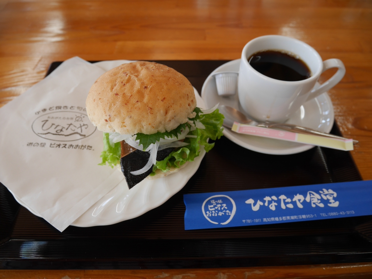 地元の高校生(?)が考案したという「カツオたたきバーガー」を食べてみることに。