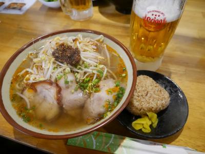 味の方はまあ普通。スープはあっさりした甘めのかつおだし(?)ですが、お肉がこってりしているので、(小)でも満腹になりました。- 旅行時期