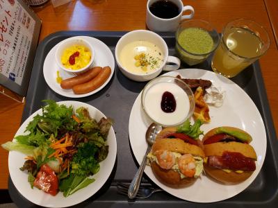 アペタイザーに野菜サラダなどのビュッフェ、ローストビーフやジンギスカンの鉄板焼もあってお腹いっぱいになりました。