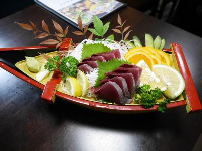 そのほか「ビリガツオ」も入荷しているというのでオーダー。この地方でしか食べられない新鮮なカツオをいただきました。