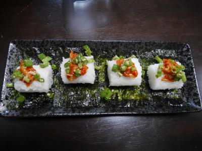最後に名物つっこ飯。「おいさ~!おいさ~!」とお兄さんの威勢のいい掛け声とともに、ほかのテーブルではどんぶり飯に山盛りのいくらが掛けられて、いよいよ自分たちの席に回ってきました。「あれ、これだけ?」 私たちのコースでは御飯が詰められた5cm四方ぐらいの枡に2おいさ~程度のいくらが掛けられただけでした。まあ、3口で食べられましたね。