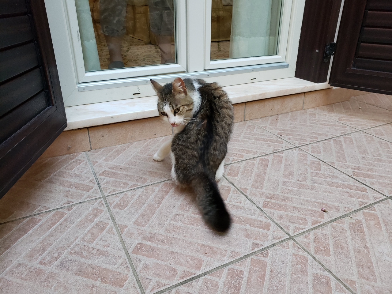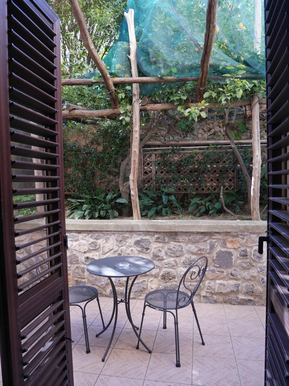 1泊目はno.17の部屋。裏庭があって外に出てみるとレモンの木があり、庭の端っこからは海も見えました。しばらくすると裏庭にネコがやって来て、しばらくじゃらして遊びました。