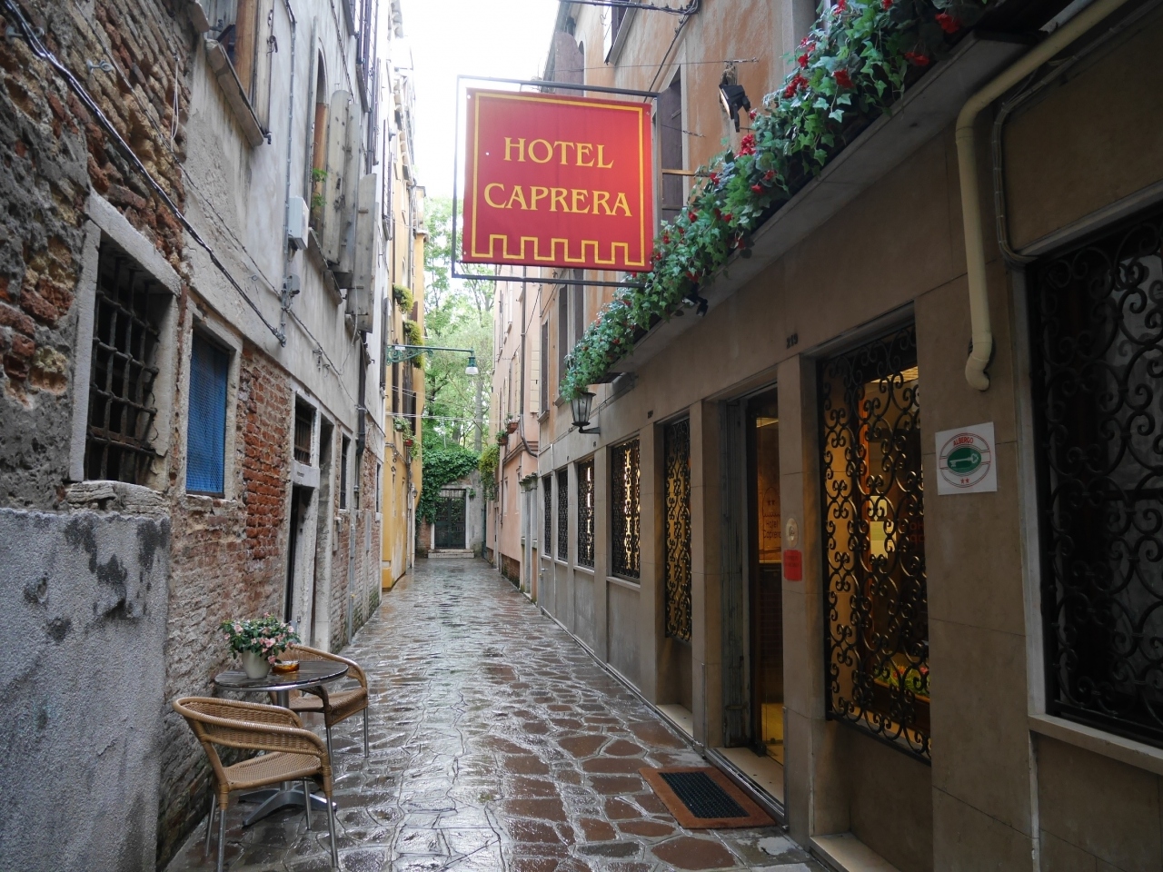ベネチアサンタルチア駅から300mぐらい。大きな通りから細い路地を入ったところにあります。