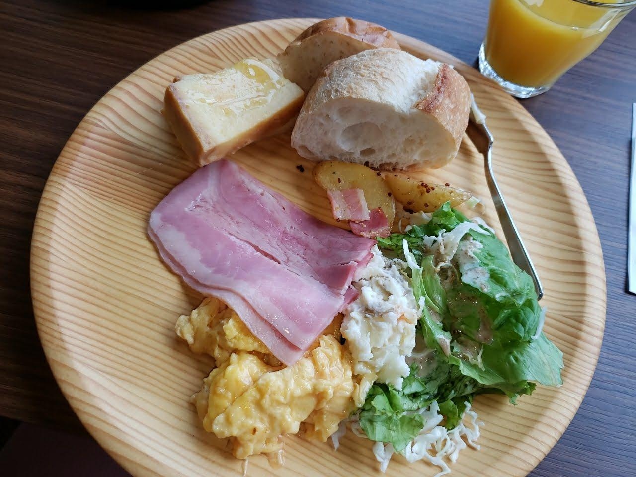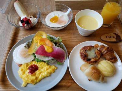 朝食はコロナ対策で、ビュッフェでなく和食か洋食のセットでしたが、メニューに北海道感が全くありません。コーンスープもポテトも牛乳もいたって普通。白身魚の揚げ物は脂っこく衣が硬くて食べられませんでした。
