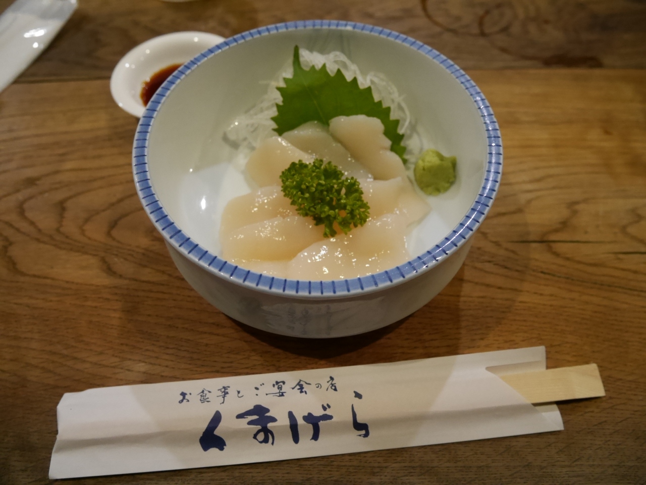 それなら他のものも食べてみたいと、ホタテのお刺身とじゃがバターも注文。