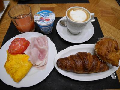 朝食は7.5ユーロで、カットフルーツ、ヨーグルト、レギュラーコーヒーがありましたが、ハム、チーズ、野菜はありません。