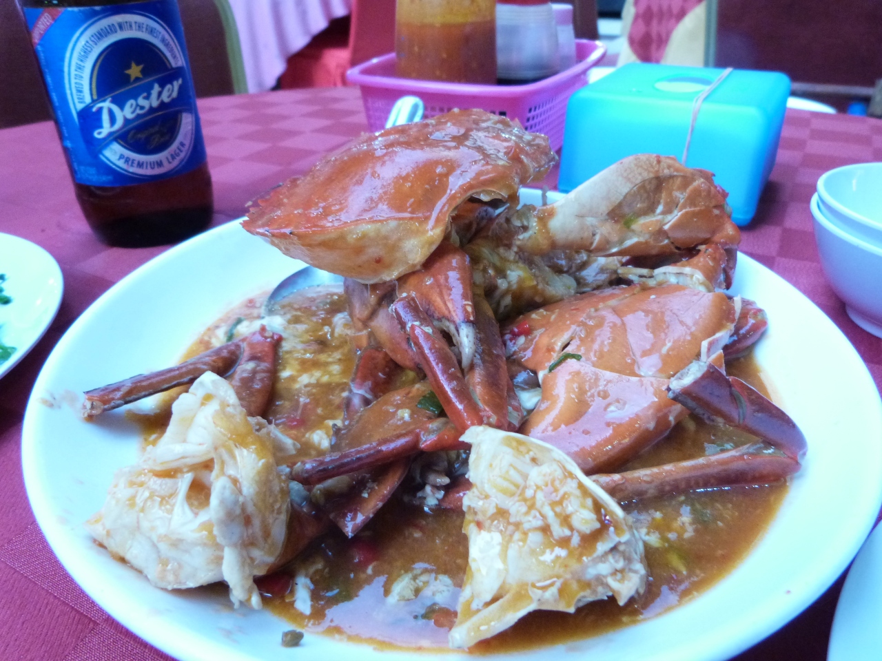 いつものように、エビを蒸したものと、チリクラブをオーダー。