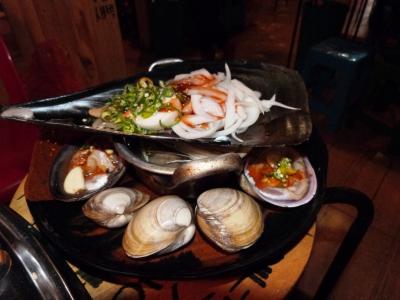 たくさんの種類の貝を、目の前で焼いてくれます。