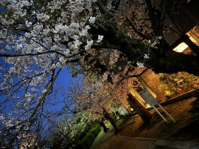 ホテル裏の川沿いの道は春だったので桜が綺麗でした。