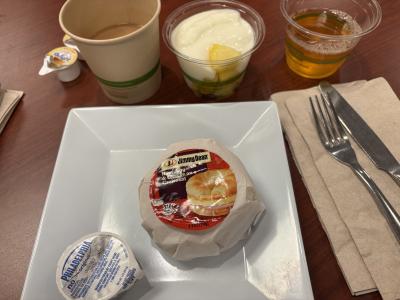 朝食は毎日パイナップルとヨーグルト、日替わりでハムサンドやパンケーキやフレンチトーストです。