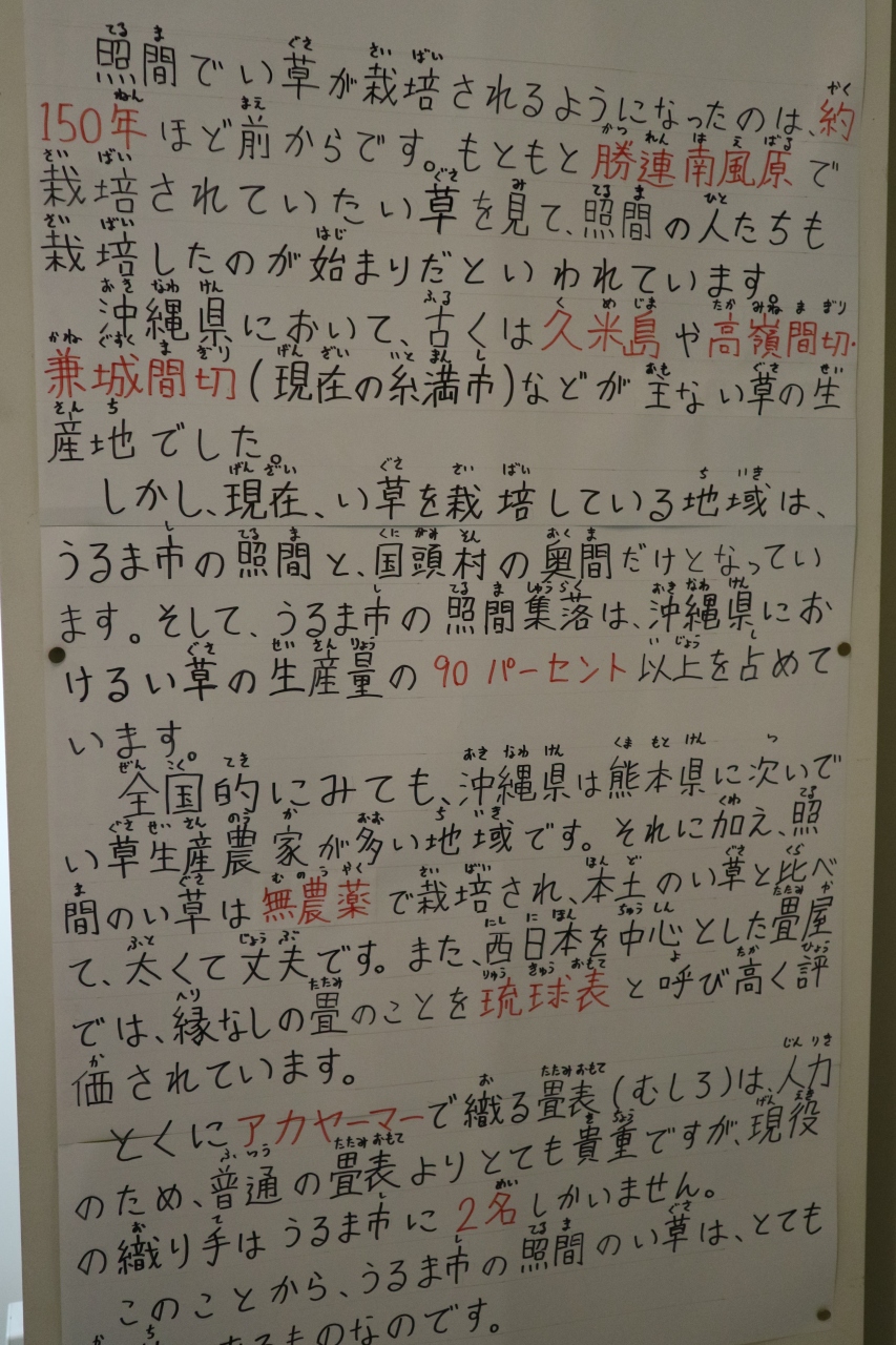 農林水産大臣賞を受賞した、うるま市のイ草生産のレポートが展示されていました。