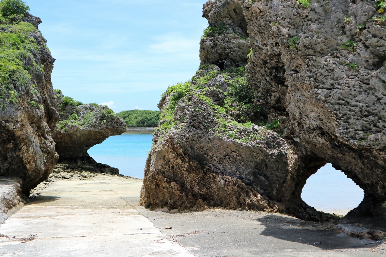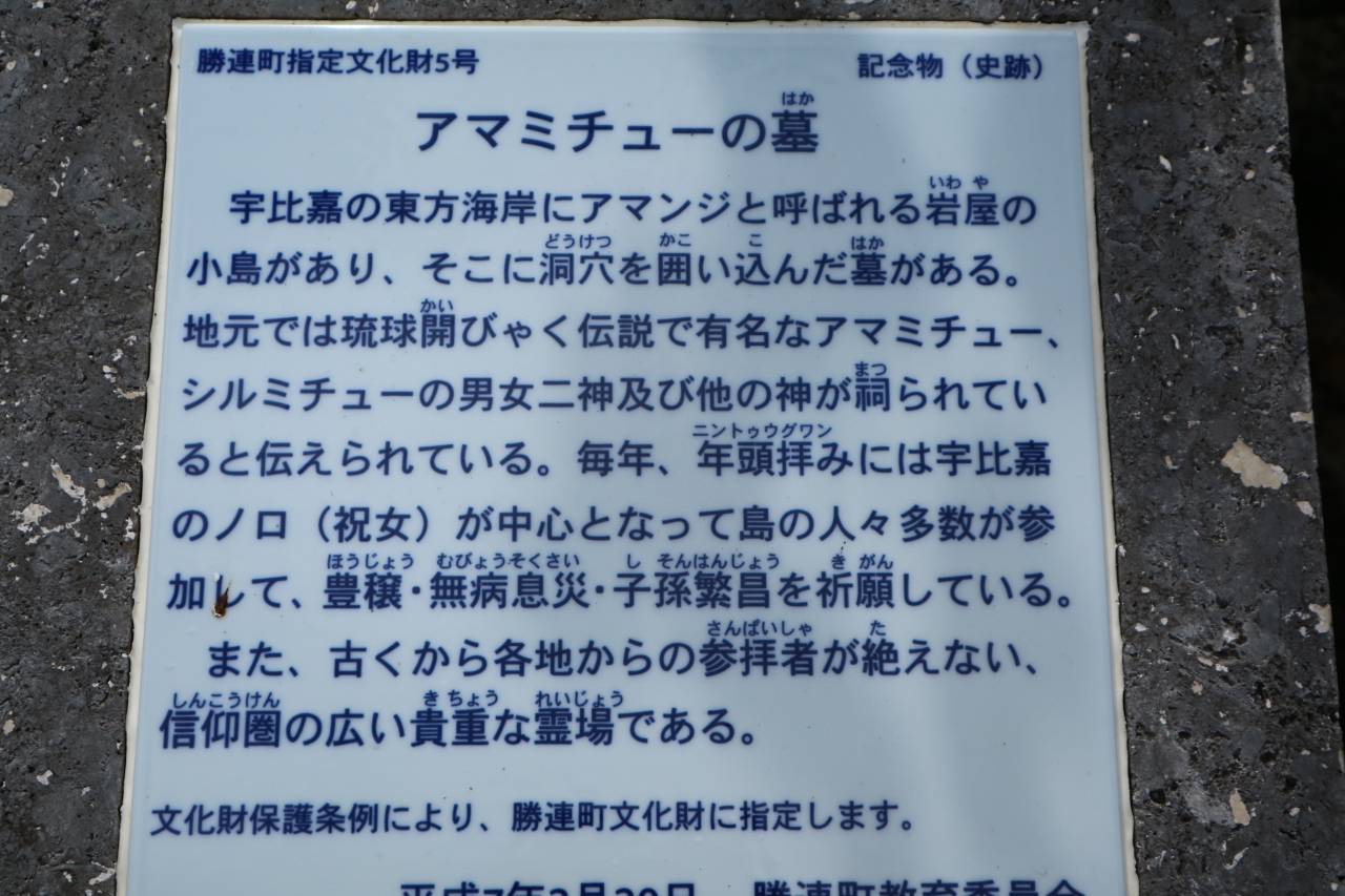 浜比嘉大橋を渡ってすぐ、「アマミチューの墓」と表示があり、左に不思議な雰囲気漂うエリアがありました。
