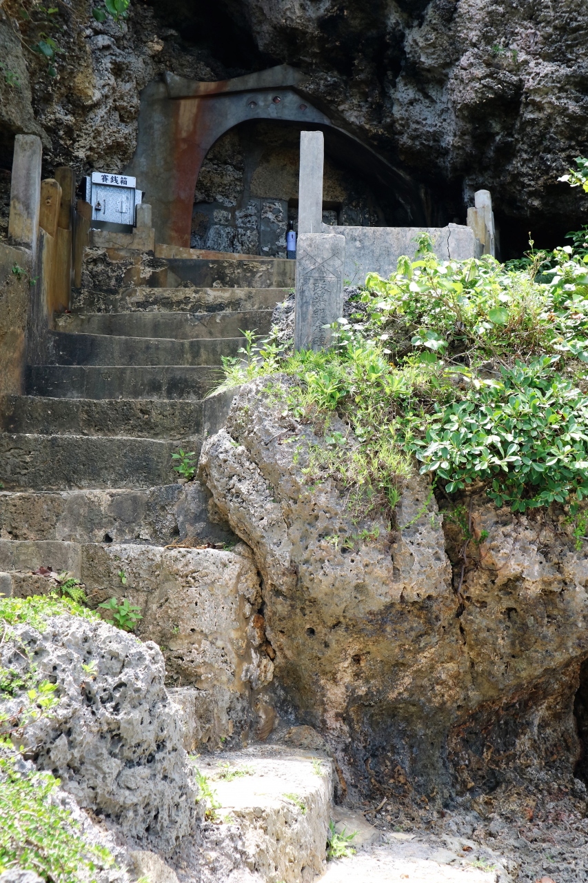 細い道を奥へ進むと、琉球創世の二神のうちのアマミチューのお墓がありました。