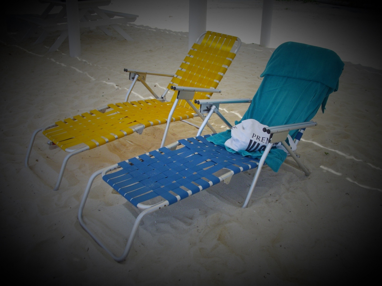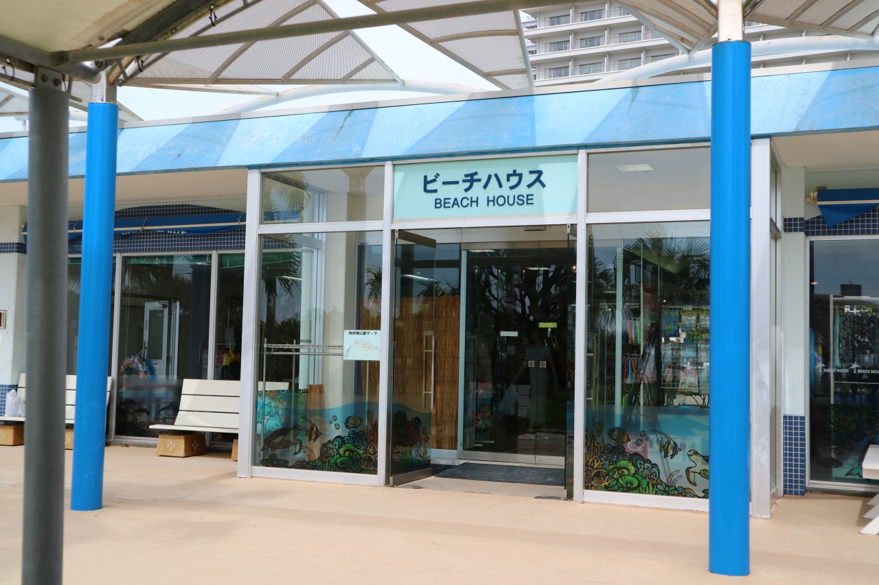 ビーチハウスでパラソルと折り畳み椅子をお借りしました。