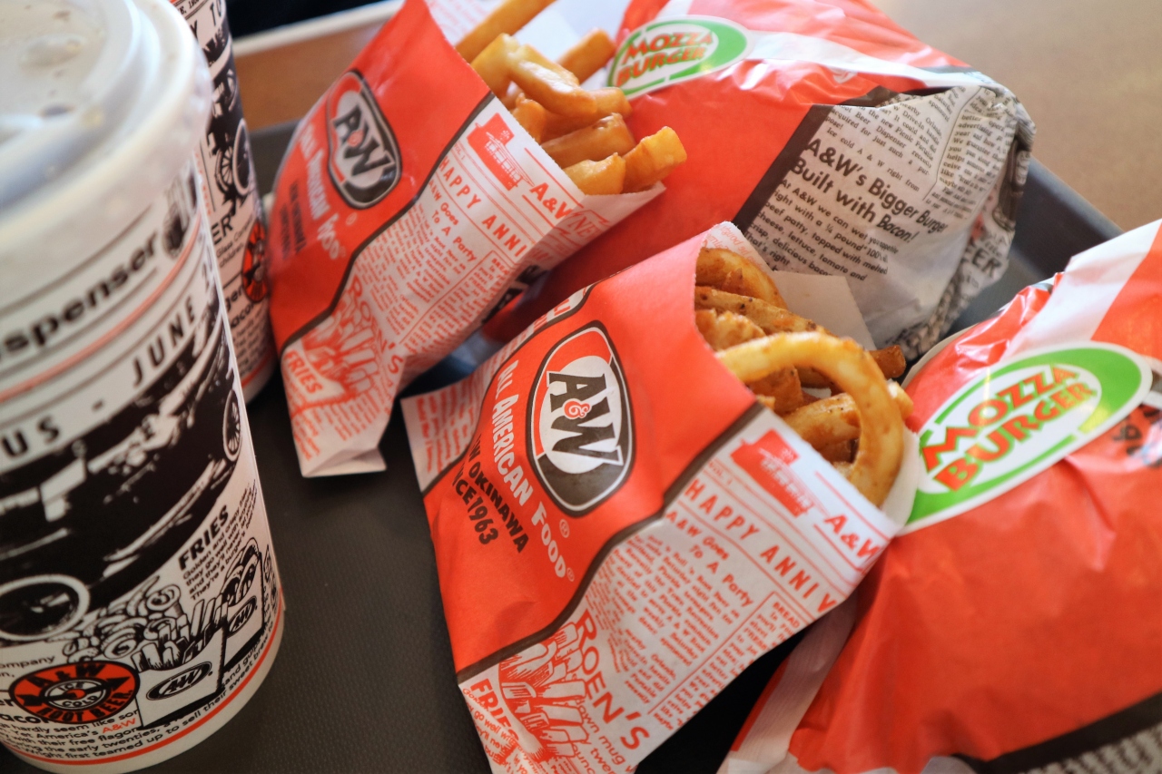到着した時に沖縄そばを食べ、旅中でブルーシールアイスを食べ、出発前にA&Wバーガーを食べて覇空港を後にする。それがいつかしら我が家の定番となりました。
