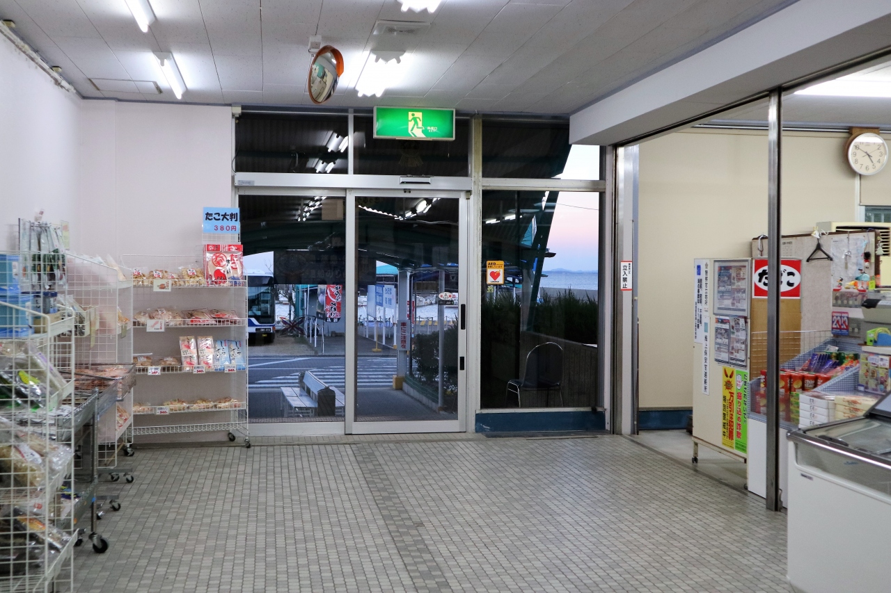 センターには待合所、飲料の自動販売機、売店、お手洗いがありますが、自動販売機、売店では酒類の販売はありませんでした。- 旅行時期