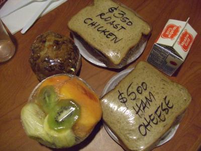 遅い時間でもちゃんとサンドイッチとフルーツがありました。