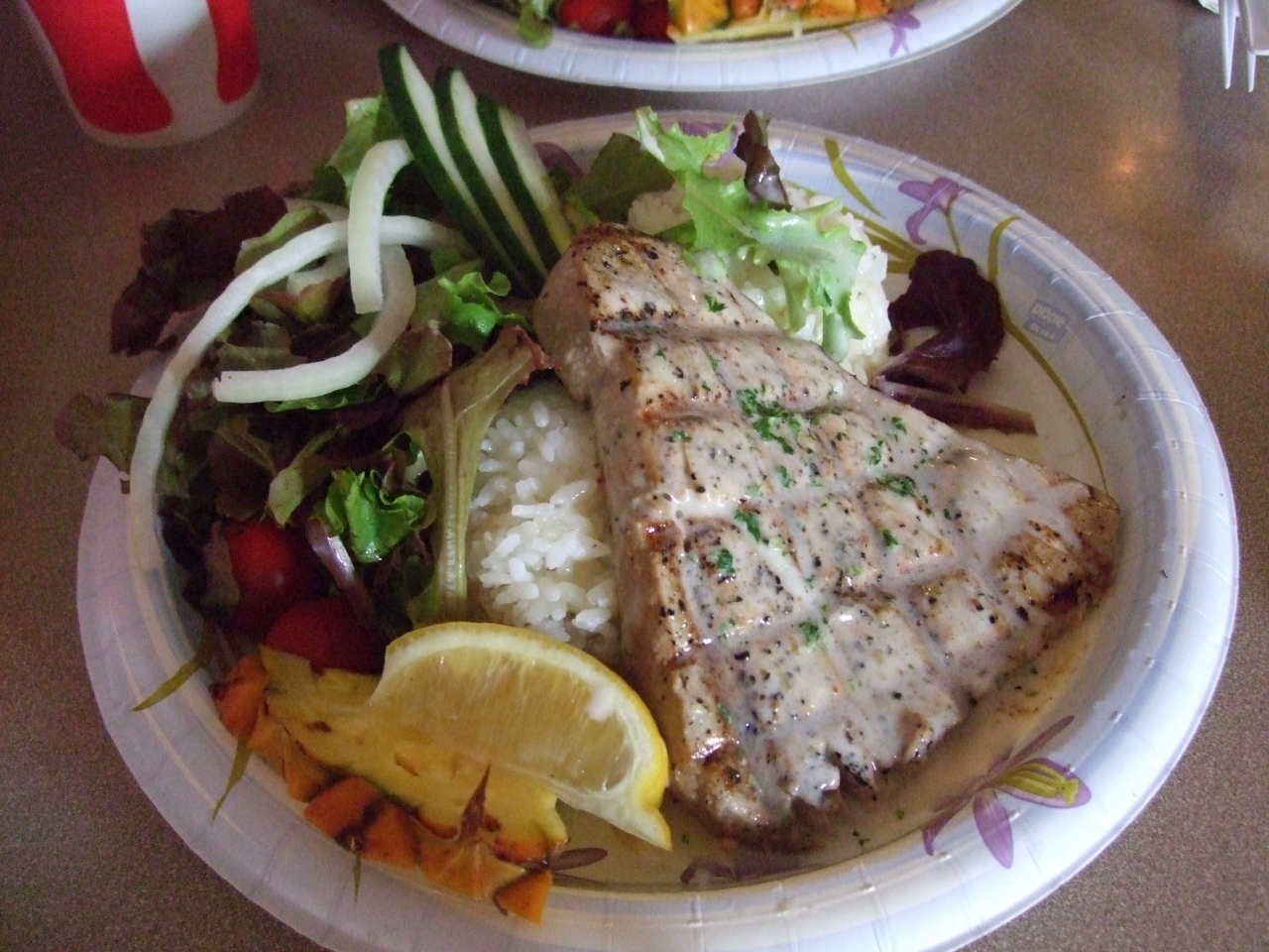 肉ばかりで飽きてしまったので、レモンをしぼってさっぱりとしたお魚を