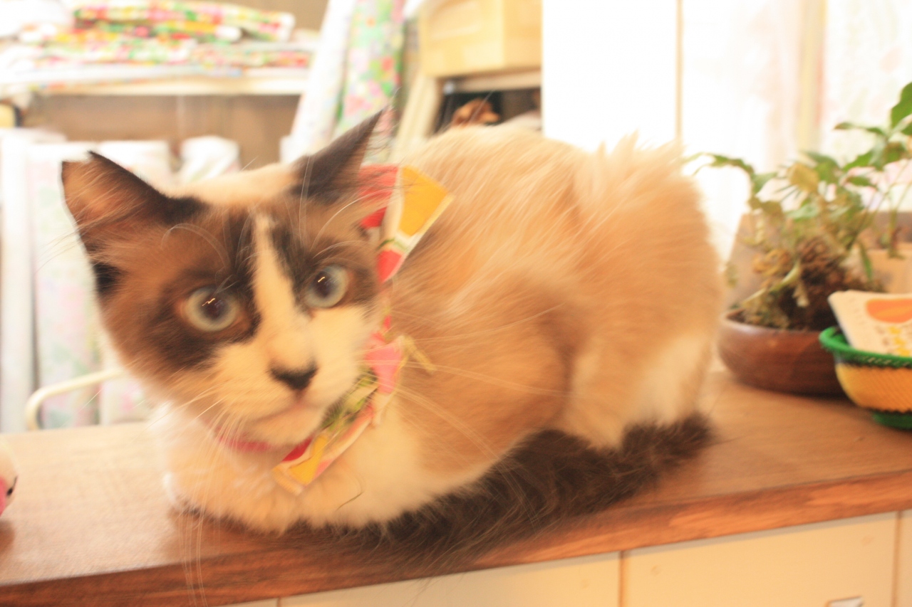 店内には、MIMURIさんデザインの布のリボンを付けた