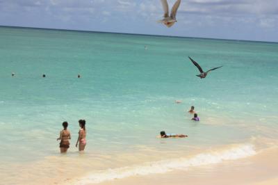 橋を渡ってまず、ビーチを見ようと車を停めようとるすと、番人のおじさまがいらっしゃいます。