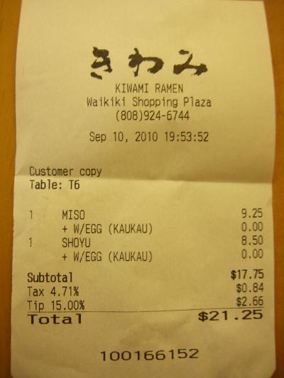 税込み$8.22。ロイヤルハワイアンセンター2階と