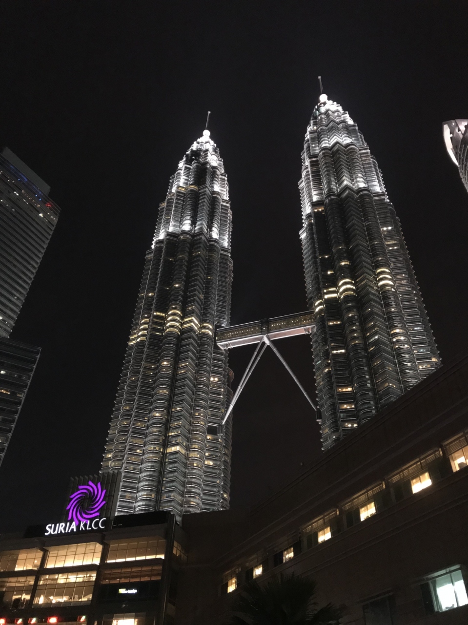 ツインタワーの周辺に池があり、夜になるとライトアップされて音楽に合わせて噴水ショーみたいなことがされていました。夜でも池の周辺に人が沢山おり治安も悪くはないです。ツインタワー内は通り抜けができ、中は高級ブランド店が並んでいます。
