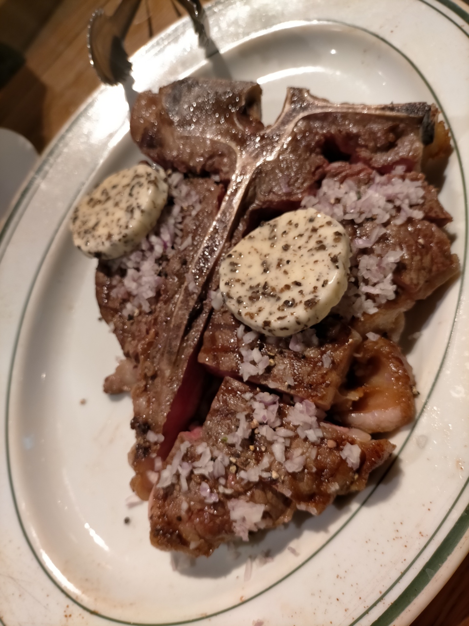 以前とは場所も変わり、立ち席ではなく全席座れるようになっていました。主人がネットで見たメニューをメニュー表で探しましたが、なかったので店員さんに聞くとありました。それはTボーンステーキです。限定みたいなので食べてみたい方は店員さんに聞いてみるといいかもしれません。