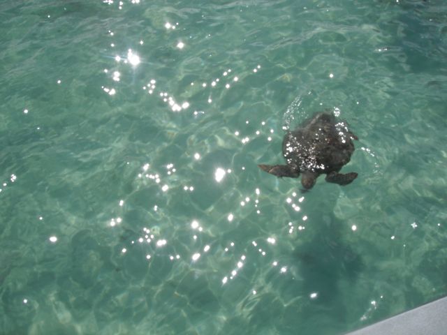 サンドバー付近へ停泊すると餌付けされている海亀が