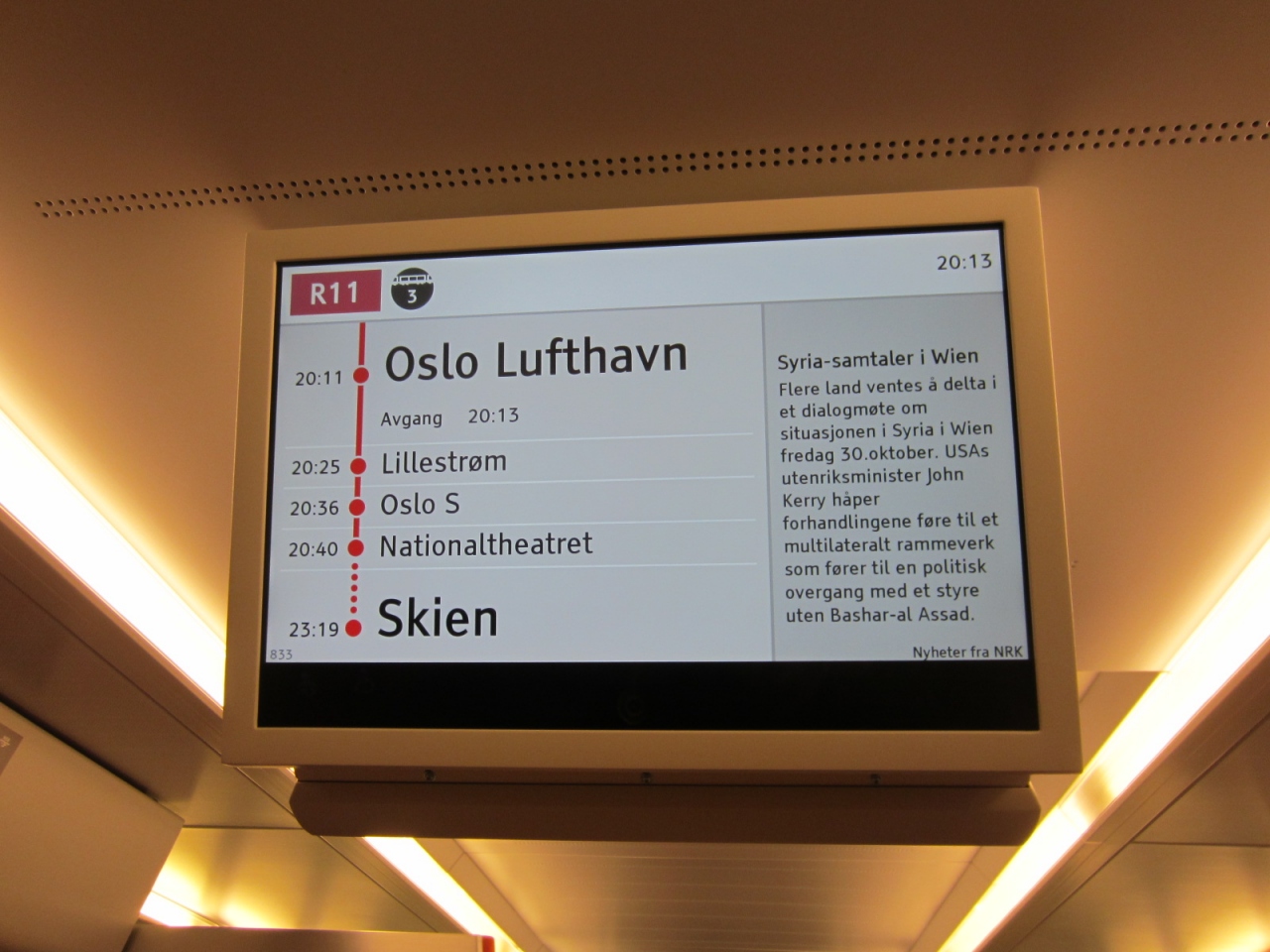オスロ中央駅までの停車駅は、1駅しかありません。