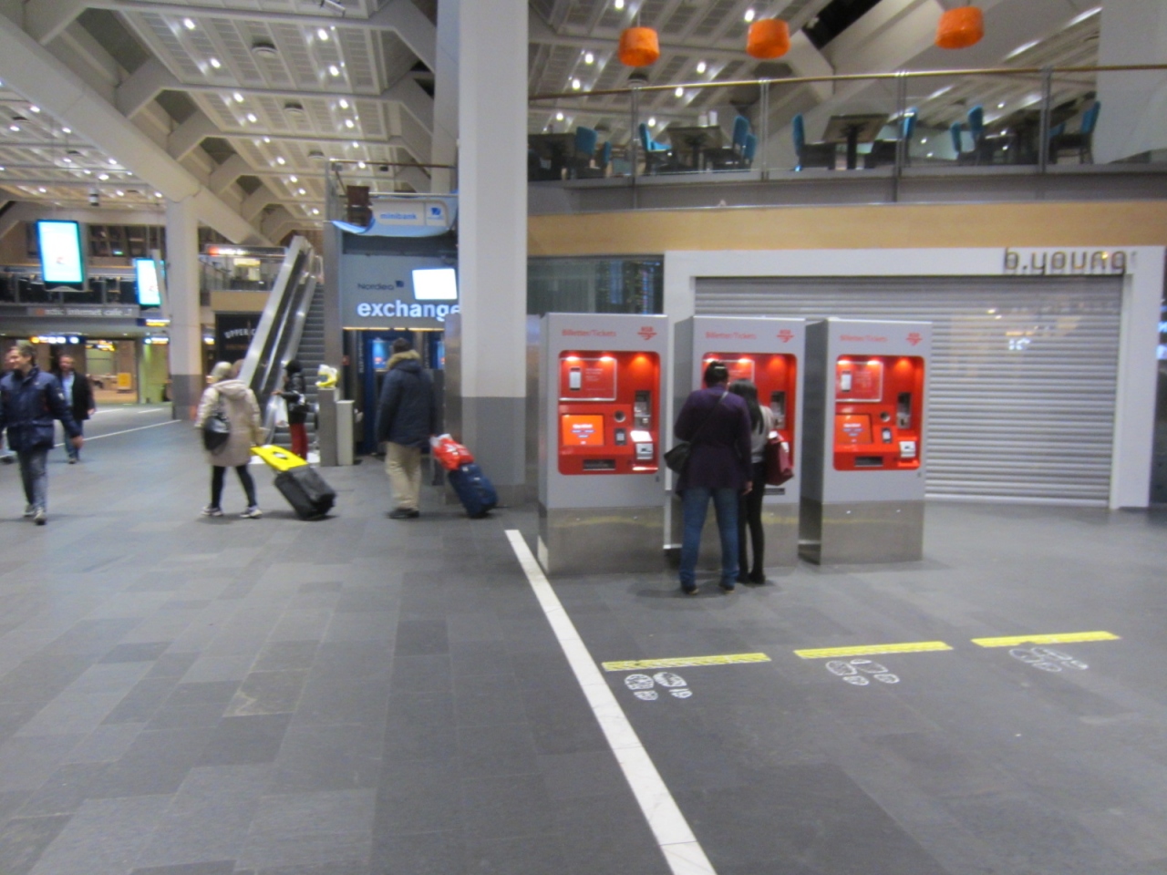 そのまま行くと、右手がFlytoget、左がローカル線の切符売り場、その先に乗り場があります。