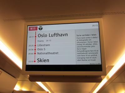 オスロ中央駅からお帰りの際は、オスロ空港の表記が、