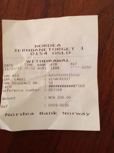 最小の200NOKを引き出しました。