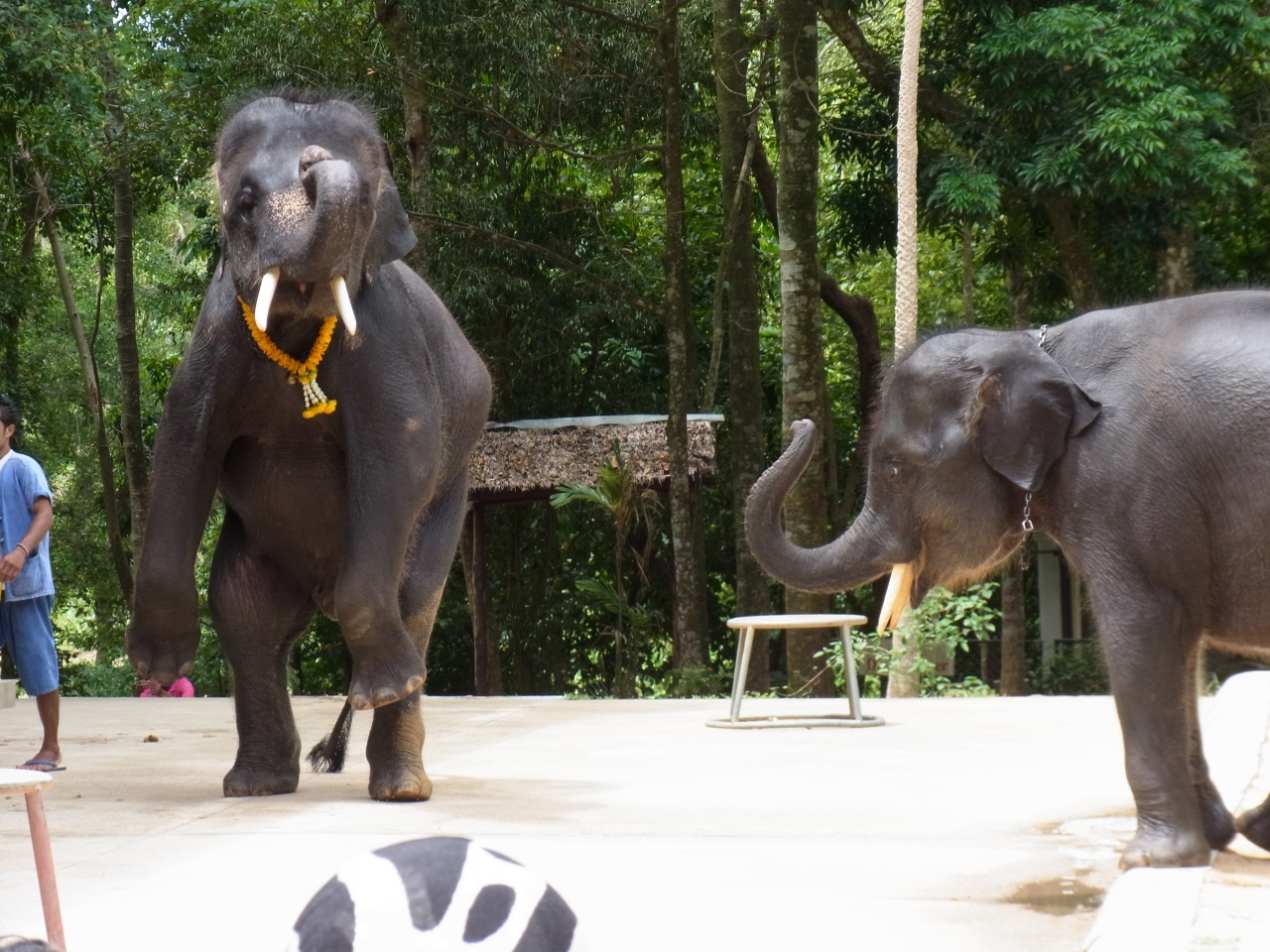 こどもの象にバナナをあげたり、象のショーなど盛りだくさん。