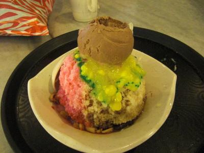 暑いので休憩です。アイス・カチャン。アイスクリームがのったカキ氷です。...