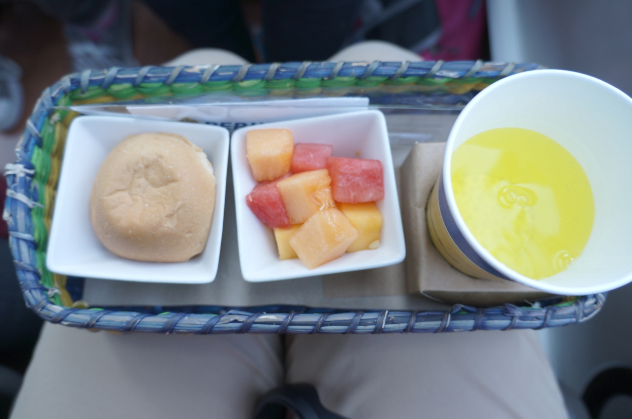 ・食パン3枚・パウンドケーキみたいなの2枚・目玉焼き&ベーコン(後で来た)オレンジジュース・コーヒーor紅茶(おかわり可)が一人分。写真にある果物は2人分。