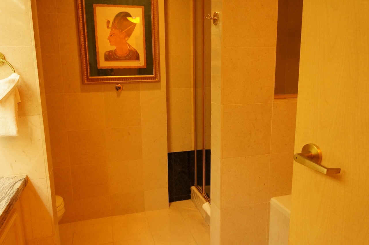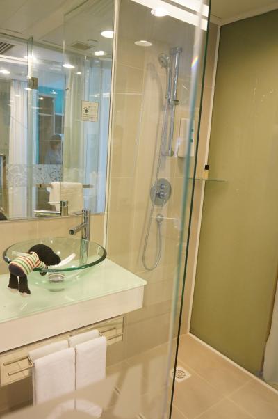 シャワーは固定式。排水問題なし。バスタブあり。お湯は向かって左にひねる。なぜかカランはなくシャワーのみ。暖房のスイッチは何度か試したけどよくわからず。トイレットペーパーの位置が遠すぎて便器に座ってからじゃないと取れない。