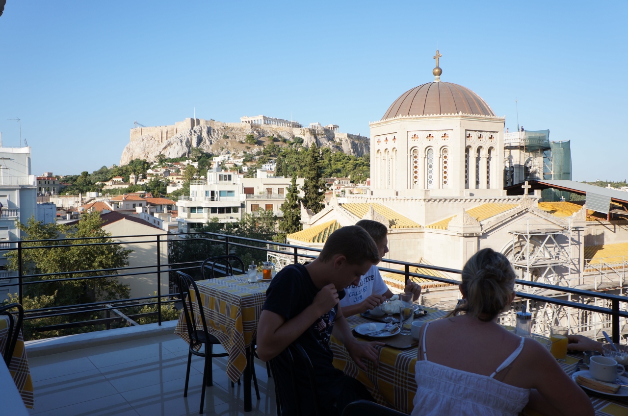 *屋上は24時間開放でアクロポリスの丘が一望できる