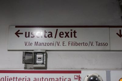 地下鉄でホテルへ戻ってくる時は、『Manzoni (マンツォーニ)駅』下車後、『Via E.Feliberto』 と表示されている出口のサインを頼りに出るとすぐ右側にホテル。(写真参照してください)