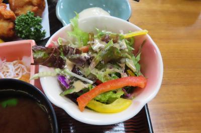 セットに付いているサラダも胡麻ドレッシングで美味しくいただきました。